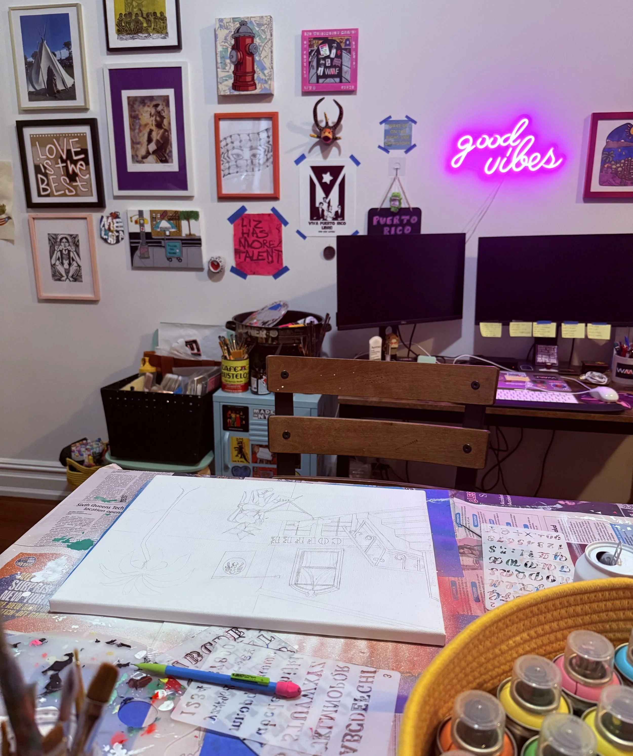 Liz B working on a community mural in Astoria, Queens with fellow artists